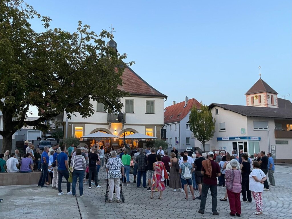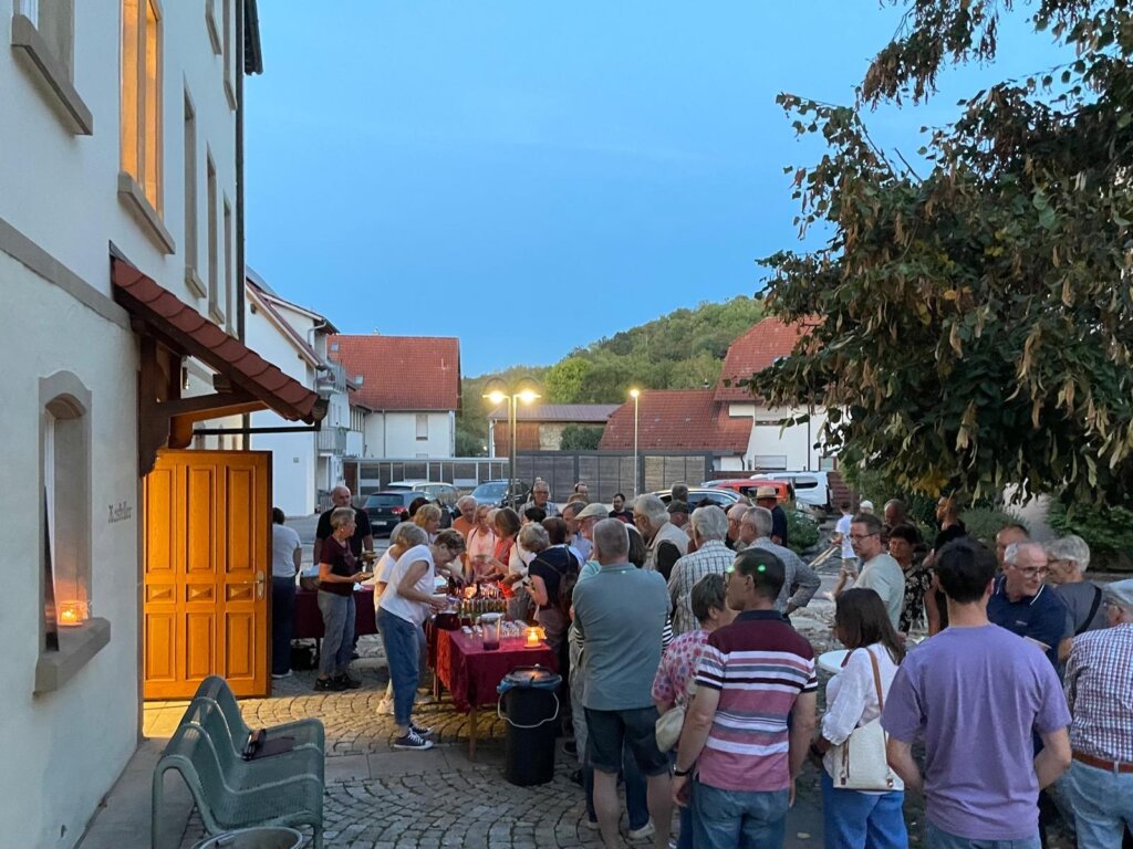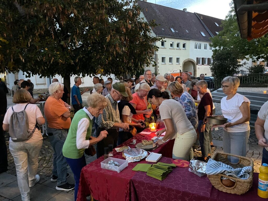 Nach dem Rundgang gab es einen Ausklang des Abends bei einem gemütlichen Umtrunk und Imbiss auf dem Bürgerhausvorplatz/Ratskeller.